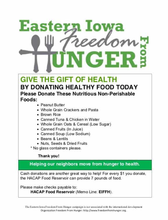 6–9pm: Parlor City at 1125 3rd St SE in Cedar Rapids. We will collect donations for SAINT Rescue (https://www.saintiowa.org/how-you-can-help/donating) as well as for Eastern Iowa Freedom From Hunger Food Drive (see attachment). Come early for club social hour, meeting starts at 7pm.