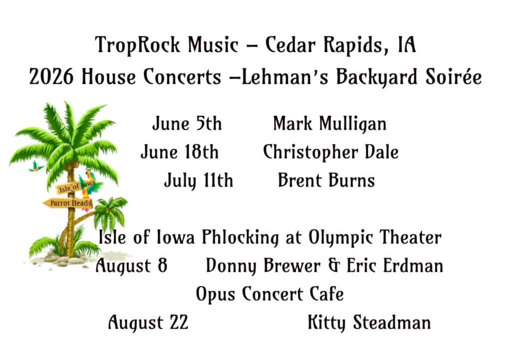 Saturday, May 2, 7 PM: Gone 2 Paradise - The Ultimate Jimmy Buffett Experience, Quad Cities Waterfront Convention Center.